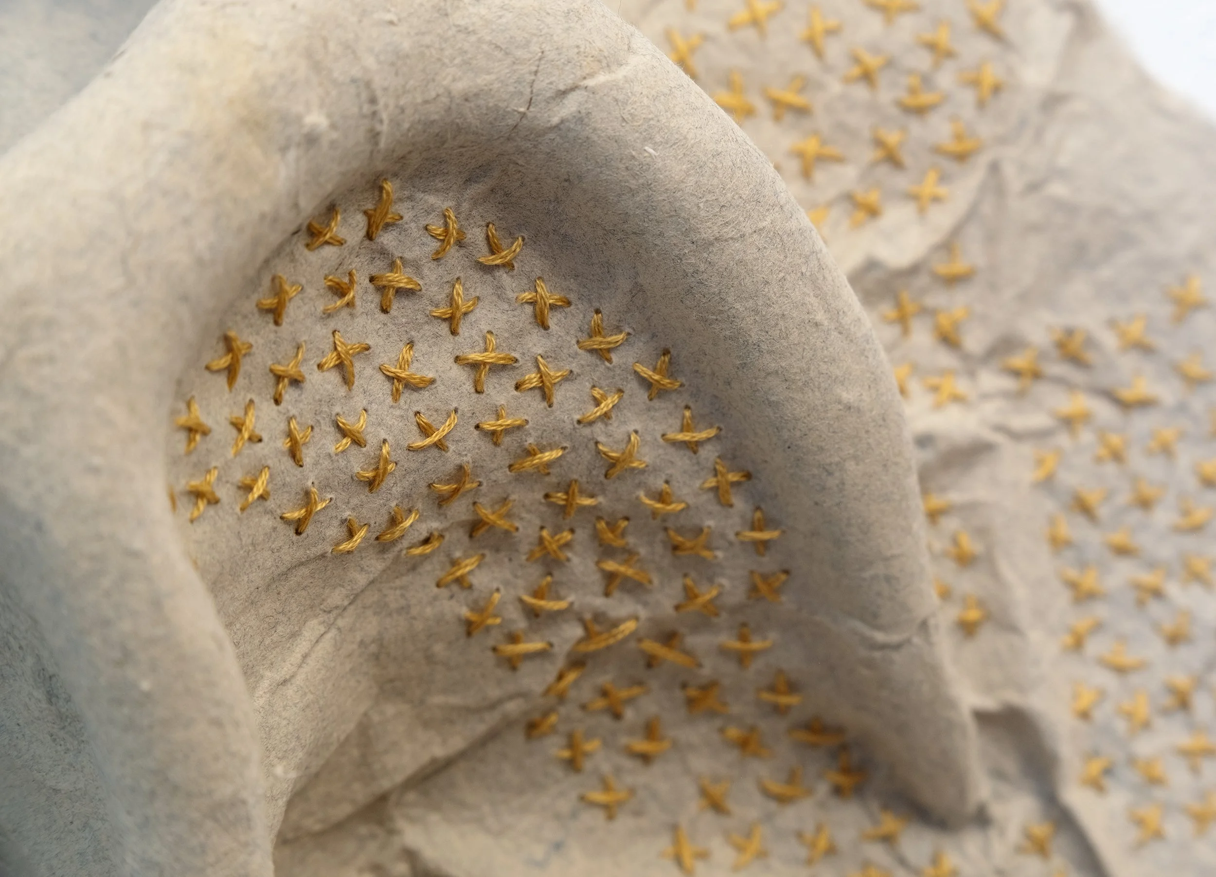 Reliquaries will consist of paper forms based on natural artifacts I have collected over several decades. Where possible, I will paper cast specimens such as skulls, antlers, and bones, and shift to handmade paper forms for more delicate objects like nests and insects. I will adorn them with embroidery and collage inspired by the ornamentation of historical reliquaries.